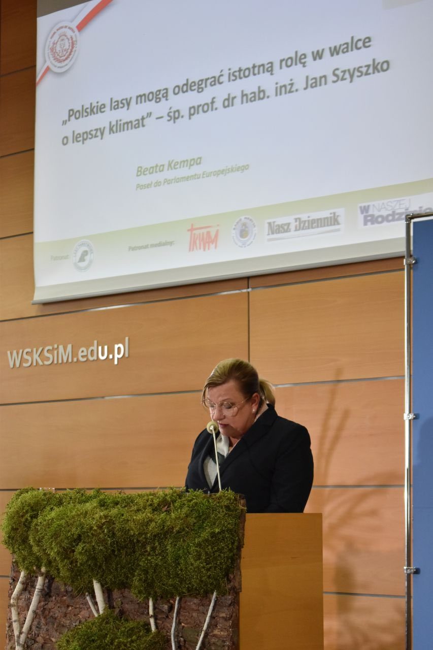 Później europoseł Beata Kempa skierowała słowo do zgromadzonych gości. Europoseł zaznaczyła, że jesteśmy winni śp. prof. Janowi Szyszko wielką wdzięczność i zapał do działania, aby kontynuować dzieło Wielkiego Obrońcę Polskich Lasów.