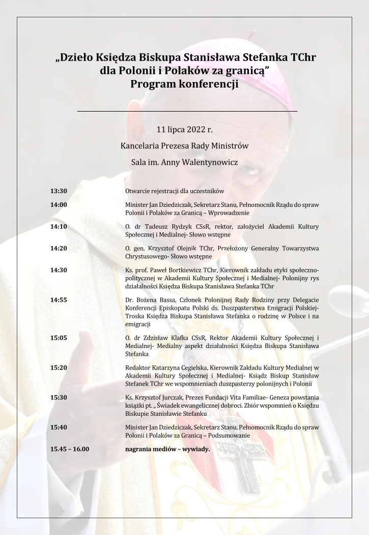 W kancelarii premiera odbyła się konferencja pod hasłem: „Dzieło Księdza Biskupa Stanisława Stefanka dla Polonii i Polaków za granicą”. W wydarzeniu wzięli udział m.in. o. Tadeusz Rydzyk CSsR, dyrektor Radia Maryja, o. dr Zdzisław Klafka CSsR, rektor Akademii Kultury Społecznej i Medialnej w Toruniu oraz ks. prof. Paweł Bortkiewicz, bioetyk.